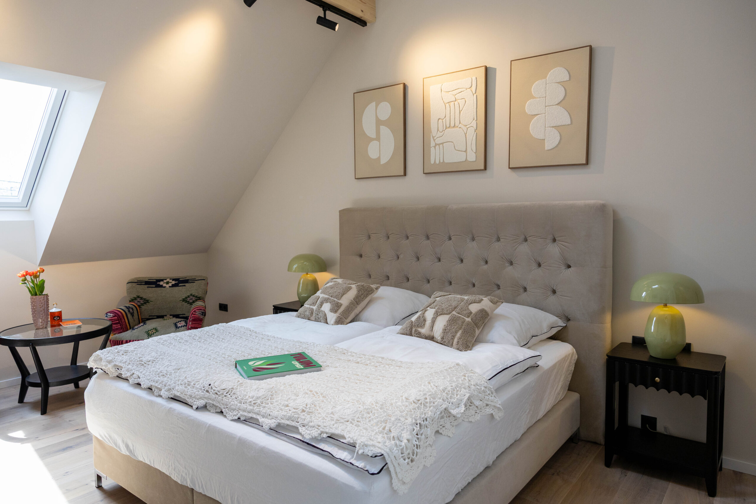 Zimmer Tulum ist eine Hommage an das Boho-Flair der mexikanischen Küste. Helle, naturbelassene Materialien wie Leinen, Holz und Bast sorgen für ein Gefühl von Leichtigkeit und Sommer – zu jeder Jahreszeit. Weiße Wände, zarte Textilien und handverlesene Dekorationen schaffen ein stilvolles, unaufgeregtes Ambiente.